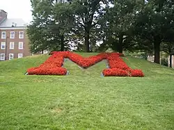 The "M" is a commemorative mound on the campus of the University of Maryland, College Park. Created in 1976 to celebrate the American Bicentennial, the mound is noted for the large floral "M" that sits in its center.[1] The flowers that make up the "M" are replaced twice annually, red 'Vodka' begonias are planted each spring for the warmer months and replaced with yellow pansies each fall.