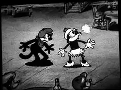 Krazy's spaniel girlfriend makes one of her earliest appearances in this short, therefore becoming one of the primary cast not originating from the comic strip. She would then replace Ignatz Mouse as Krazy's supporting character, and even appearing in the title cards from 1930 to 1933.