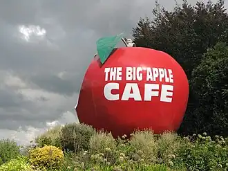 The Big Apple is a large statue of an apple in Waitomo, New Zealand. It is 7.5 metres (25 ft) tall, and located between Ōtorohanga and Te Kūiti on State Highway 3.[1] It also includes a restaurant, café, and conference facility. It is near a 1,920-square-metre (20,700 sq ft) orchard,[1] and has four dining areas with a capacity of 500 people. As of 2009, it attracted tourists in numbers of "thousands a week."[2] It is one of New Zealand's big things.[3]