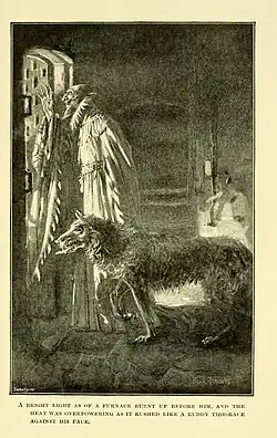 The fantasy author J.R.R. Tolkien wrote of being impressed as a boy by The Black Douglas. He said he based the battle with the wargs in The Lord of the Rings on Crockett's battle with werewolves.[3] However Tolkien said that he hadn't read the novel as an adult.[4] Scholar Douglas A. Anderson has drawn parallels with the attack of the wargs in The Hobbit. In addition, in his opinion, the ending of the chapter "The Battle of the Werewolves" in The Black Douglas is similar to the end of "The Siege of Gondor" in The Lord of the Rings.[5] Jared Lobdell has suggested The Black Douglas's overall style and imagery had an influence on Tolkien, and that De Retz inspired Tolkien's character, Sauron.[6] Sholto's secret mail-coat may have inspired Frodo's mithril coat.[7]