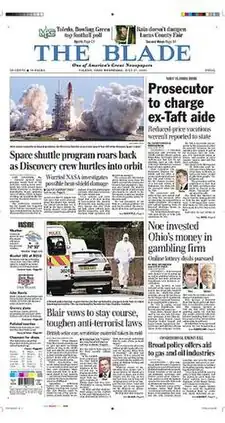 The Blade, also known as the Toledo Blade, is a newspaper in Toledo, Ohio, published daily online and printed Thursday and Sunday by Block Communications.[2] The newspaper was first published on December 19, 1835.[3]