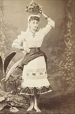This burlesque opened at the Opera Comique in London on 31 January 1877 before transferring to the Gaiety Theatre,[1][2] running for a total of 117 performances.[3] John Hollingshead managed the Gaiety from 1868 to 1886 as a venue for variety, continental operetta, light comedy, and numerous musical burlesques composed or arranged by the theatre's music director, Meyer Lutz. Hollingshead called himself a "licensed dealer in legs, short skirts, French adaptations, Shakespeare, taste and musical glasses."[4] Nellie Farren, as the theatre's "principal boy", starred at the Gaiety for over 20 years, and both Edward O'Connor Terry and Kate Vaughan were regulars.[5]