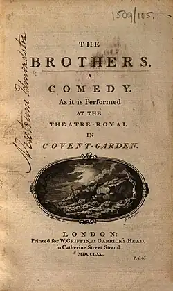 The Brothers is a 1769 comedy play by Richard Cumberland. The play was Cumberland's breakthrough work.[1] Its complicated plot involved a villain with a virtuous young brother[2] and was set partly in Cornwall. He dedicated the play to the Prime Minister of the United Kingdom the Duke of Grafton. Two years later Cumberland went on to write his most successful work The West Indian.