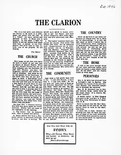 The Clarion was a newspaper established in New Glasgow, Nova Scotia, by Carrie Best in 1946. It was the third publication in the province owned and published by a Black Canadian,[1] after The Atlantic Advocate established in 1915 and The Nova Scotia Gleaner established in 1929.[2] On the masthead below the newspaper's name was the text "Published in the Interest of Colored Nova Scotians".[1]