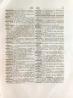 The Dictionary, finished in 1863, was a result of 16 years of scrupulous work by Nasovič.[3] Its forerunner was the unpublished "Index of Ancient Belarusian Words Selected from the Acts Relating to the History of Western Russia", with the explanation of approximately 13 thousand words and concepts.[5][6]