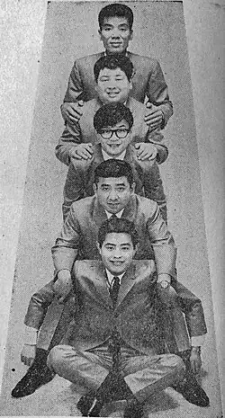However, members in the group changed back and forth occasionally. Chosuke Ikariya became the group's leader in 1964. Although the band became famous as a comedy group under Ikariya, they took part in the Kōhaku Uta Gassen as a musical band for the first time in 2001. Ikariya died of lymph node cancer in 2004 at the age of 72.