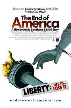 The End of America is a 2008 documentary film directed by Annie Sundberg and Ricki Stern, adapted from Naomi Wolf's 2007 book, The End of America: Letter of Warning to a Young Patriot. The film scrutinizes policy changes implemented during the Bush administration and argues the case that these alterations pose a threat to American democracy.