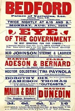 The Eye of the Government is a 1914 American silent film produced by Gene Gauntier Feature Players and distributed by Warner's Features. It was directed by Sidney Olcott with himself, Gene Gauntier and Jack J Clark in the leading roles.[1]