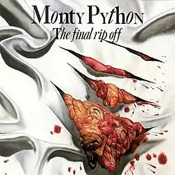 The Final Rip Off is a compilation double album by Monty Python, released in 1987. It was the team's first release on Virgin Records, after the label acquired the rights to their back catalogue previously released on Charisma. The set contains material from those six albums, but not from the Life of Brian or The Meaning of Life soundtracks, which were released on other labels. Michael Palin added some new linking material while all the songs were remixed by producer Andre Jacquemin including one, "Henry Kissinger", which featured a previously unreleased section. Contrastingly, the selections from Another Monty Python Record and Live at Drury Lane were mixed from stereo into mono. The cover art, with its graphic image of spilling guts, was illustrated by Les Edwards.