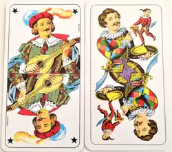 The fool may be the precursor of The Joker.[6] However, the Joker more likely evolved independently in the 1850s as a permanent trump specifically for the game of Euchre.[7]