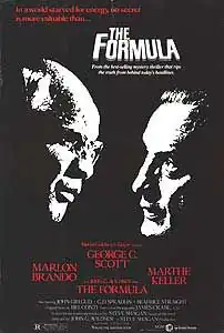 The Formula is a 1980 mystery film directed by John G. Avildsen. It was produced and written by Steve Shagan, who adapted his own 1979 novel The Formula. The film stars Marlon Brando, George C. Scott, Marthe Keller, John Gielgud, G. D. Spradlin, and Beatrice Straight.