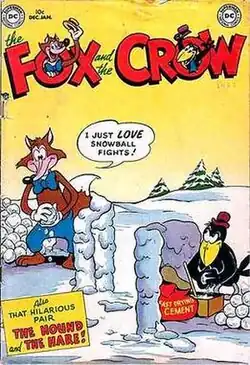 The Fox and the Crow starred in several talking animal comic books published by DC Comics, from the 1940s well into the 1960s. They starred with other characters in DC's Columbia-licensed talking-animal anthology Real Screen Comics (first issue titled Real Screen Funnies) beginning in 1945,[7] then did likewise when DC converted the superhero title Comic Cavalcade to a talking-animal series in 1948.