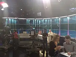 Many public figures politicians have appeared on the programme.[4][8] Some incidents on the programme have attracted a large amount of media coverage.[9][10] The programme has generally received positive reviews.[11][12] The programme is broadcast from Studio 4 in RTÉ.[3] The first programme received an audience share of 43.4%, with a viewing audience of 464,000.[13] Later into the programme 100,000 fewer people watched it, watching The Apprentice instead.[14] It won "Best Current Affairs programme" at the 7th Irish Film and Television Awards in February 2010.[15]