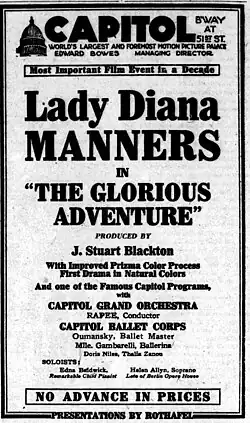- ^ "Reviews: The Glorious Adventure". Exhibitors Herald. 14 (20). New York City: Exhibitors Herald Company: 59. 13 May 1922.