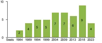 In 2004, the Greens regained the ground that they had lost in 1999 and won two additional seats in the Chamber. Although they got 15% of the votes in the coinciding European elections, placing them third, they couldn't add to their single seat.