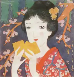 In The Heart of Thomas, Hagio develops important aspects of the principles of visual composition that have come to define the distinctive aesthetic of shōjo manga.[38] While these principles are not the work of Hagio alone, and instead took shape by degrees through the contributions of many artists beginning in the 1950s,[39] Hagio develops this aesthetic in part by borrowing features from illustrations in pre-World War II Japanese girls' magazines.[38] She references jojōga (lyrical pictures) in particular,[38] a category of illustration which sought to create a mood of sad longing while also scrupulously depicting current trends in fashion.[40] Both jojōga and these shōjo visual principles are directed towards a girls' culture, and seek to heighten an emotional response.[39]