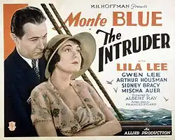 The Intruder is a 1933 Pre code comedy crime film directed by Albert Ray and starring Monte Blue and Lila Lee, two silent screen veterans.[1] The cast also featured Gwen Lee, Arthur Housman and Mischa Auer. Shot at the RKO-Pathé Studios in California, it was produced and distributed by the Poverty Row studio Allied Pictures.[2] The picture survives in the Library of Congress collection.[3]