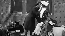 The Kiss in the Tunnel, also known as A Kiss in the Tunnel, is a 1899 British short silent, comedy film, produced and directed by George Albert Smith, showing a couple sharing a brief kiss as their train passes through a tunnel, which is said to mark the beginnings of narrative editing.[1][2] The film is the first to feature Laura Bayley, Smith's wife.