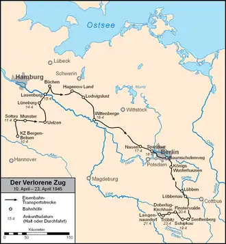 - ^ a b Langels, Von Otto (April 24, 2020). "Vor 75 Jahren - Truppen der Roten Armee befreien den "Verlorenen Zug"". Deutschlandfunk (in German). Retrieved 2021-12-22.