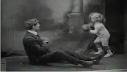 The Man to Beat Jack Johnson is a 1910 British short black-and-white silent comedy film, produced by the Tyler Film Company, featuring four-year-old Willy Sanders demonstrating his boxing and wrestling skills against an adult opponent.