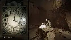 Initially they approached the game with a first-person perspective, splitting the player's screen in two. After deciding to have Marianne exist in both the real and spirit world as to handle the situation with collisions, they found initial playtesters had difficulty maneuvering in this view, often twice going over an area to first focus on one world's view and then to focus on the other. They took cues from Japanese horror games like Silent Hill and Resident Evil which used fixed cameras and third-person perspective to better present the game for players to see both worlds at the same time while capturing the spirit of these horror games.[10] This also helped to enhance the player's immersion in the game.[5] They maintained this split-screen concept in cutscenes as well, though frequently switching up camera angles. This partially was used to mask unrendered details in some settings, but was also used to keep a sense of unease as when Marianne has a conversation with characters in the spirit world, while her real self is shown interacting with nothing.[10]