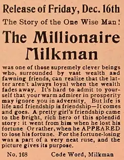 - ^ a b c d Q. David Bowers (1995). "Volume 2: Filmography - The Millionaire Milkman". Thanhouser.org. Archived from the original on March 4, 2016. Retrieved March 12, 2015.
