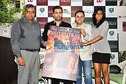 Since both The Immortals of Meluha and The Secret of the Nagas had innovative marketing techniques, Tripathi spoke about similar innovativeness with the release of The Oath of the Vayuputras.[5] One of the marketing strategies included a music album called Vayuputras, an original soundtrack based on the Shiva Trilogy.[23] The idea for the album came from Sangram Surve, CEO of Tripathi's advertisement agency, Think WhyNot.[24] The album had nine songs dedicated to Lord Shiva with several Bollywood singers lending their voices, and was inspired by the different sections and storyline in the books.[25] Titled "Jo Vayuputra Ho" ("One Who is a Vayuputra"), the lead song was composed by musician Taufiq Qureshi and recorded by singer Sonu Nigam.[26][27] A music video was also developed by Think WhyNot team, directed by Amit Pandirkar and music by Rajeev Sharma. The video was broadcast in popular television channels and across all social media platforms. The concept of the music video was the journey of the three books of the Shiva Trilogy in its five-minute span.[28] Other marketing strategies included launching interactive apps, merchandise and events that would follow the music and book launch.[28] In an interview with Business Standard, Surve explained: