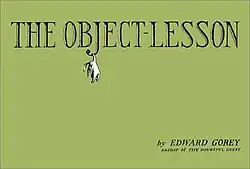 The Object-Lesson (1958) is a picture book by Edward Gorey.[1] A work of surrealist art and literature, it is typical of Gorey's avant-garde style of storytelling, with Victorian and Edwardian-esque line drawings and settings, each described with a sentence fragment which adds to a larger continuous narrative. The pictures and text combine to tell a strange and obscure story. Although internally consistent, coherent, and structured, the story has a disjointed and disorienting quality, with melancholic and morbidly humorous effects.[2]