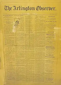 ![]() Front page of the first issue of The Arlington Observer. | |