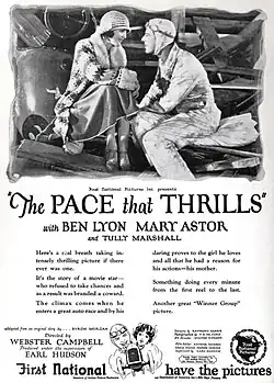 The Pace That Thrills is a 1925 American silent drama film directed by Webster Campbell and starring Ben Lyon, Mary Astor, and Charles Byer.[1][2] It was released by First National.