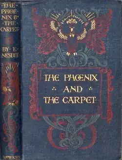 The Phoenix and the Carpet is a fantasy novel for children, written by E. Nesbit and first published in 1904. It is the second in a trilogy of novels that begins with Five Children and It (1902), and follows the adventures of the same five children: Cyril, Anthea, Robert, Jane and the Lamb. Their mother buys the children a new carpet to replace one from the nursery that they have destroyed in an accidental fire. The children find an egg in the carpet, which hatches into a talking Phoenix. The Phoenix explains that the carpet is a magic one that will grant them three wishes a day. The five children go on many adventures, which eventually wear out their magic carpet. The adventures are continued and concluded in the third book of the trilogy, The Story of the Amulet (1906).