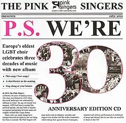 - ^ Information taken from the Pink Singers' programme from their 30th anniversary concert, 'P.S. We're 30', held on 19 January 2013 at Cadogan Hall, p.18