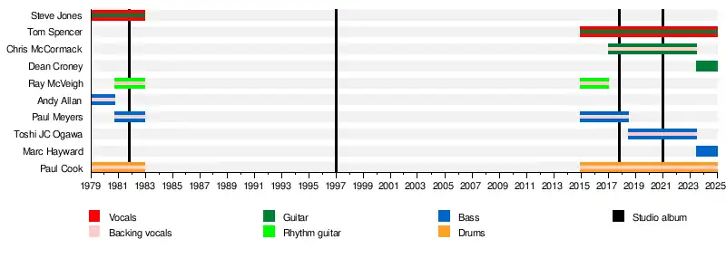 - Paul Cook − drums, backing vocals (1979–1982, 2015–2024)