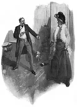 Once, while Raffles is away, Bunny dresses in the clothing of Crutchley's wife. Yet her clothing is too out of season; when he hears Raffles return, Bunny decides to simply frighten Raffles. He goes downstairs, but is horrified to encounter an armed Colonel Crutchley.