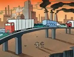 Nickelodeon assigned the newly founded Games Animation to take over the work of finishing the episodes that Spümcø had started. Reccardi, who joined Games Animation in October 1992, was assigned to once again direct the episode.[1] Reccardi later said: "I was still learning and just never took charge of that thing. Back when I was storyboarding it, I really didn't get the feel of a story for it and John was really preoccupied with other challenges at the time."[1] After the draft was completed, much of the drawings for the episode was done at Carbunkle Cartoons in Vancouver.[2] Bob Jaques, director of Carbunkle Cartoons, complained that "Yaksmen" had no real plot, being a collection of comic incidents loosely built around the story of Ren and Stimpy's pointless quest to find the Great Barren Wasteland.[2] The episode was finally finished in the spring of 1993, a year after it had been started.[3] The Los Angeles Gay Men's Choir provided the chorus for the "Kilted Yaksmen Anthem".[4] The line in the Kilted Yaksmen Anthem that says "And we're probably going to hell" was censored by Nickelodeon, which felt that lyric was too dark for children, but the word is still visible on the subtitles displayed due to humorously shoddy censorship.[4]