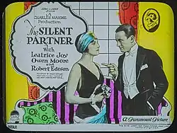 The Silent Partner is a 1923 American silent drama film produced by Famous Players–Lasky and released through Paramount Pictures. It was based on a series of articles from the Saturday Evening Post by Maximilian Foster and directed by Charles Maigne. Leatrice Joy and Owen Moore star in the feature.[1] The film is a remake of the 1917 film of the same name.[2]