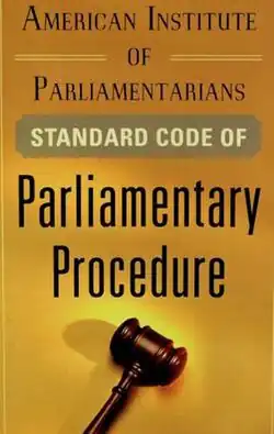 The Standard Code of Parliamentary Procedure (formerly the Sturgis Standard Code of Parliamentary Procedure by Alice Sturgis) is a book of rules of order. It is the second most popular parliamentary authority in the United States after Robert's Rules of Order.[1] It was first published in 1950. Following the death of the original author in 1975, the third (1988) and fourth (2001) editions of this work were revised by a committee of the American Institute of Parliamentarians. In April 2012, a new book, entitled American Institute of Parliamentarians Standard Code of Parliamentary Procedure (AIPSC) was released, followed by a second edition in 2023.