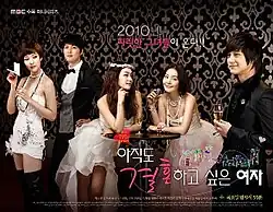 The Woman Who Still Wants to Marry (Korean: 아직도 결혼하고 싶은 여자; RR: Ajikdo gyeolhonhago sipeun yeoja; also known as Still, Marry Me) is a 2010 South Korean romantic comedy television series that revolves around three thirtysomething career women in their quest for true love. It stars Park Jin-hee, Uhm Ji-won, Wang Bit-na, and Kim Bum.[1][3][4] It aired on MBC from January 20 to March 11, 2010, on Wednesday and Thursday at 21:55 for 16 episodes.