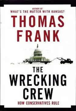 The Wrecking Crew: How Conservatives Rule (August 2008) is a book written by American journalist and historian Thomas Frank, which explores the contemporary state of conservative-governed Washington, D.C. Frank summarized the message of his book: "Bad government is the natural product of rule by those who believe government is bad." [1] Frank argues that certain elements of the Republican Party intentionally dismantled the government by many means, including turning public policy into a private-sector feeding frenzy. Frank describes the state of the federal government of the United States as analogous to a large group of privatized pigs feeding at the public trough, which was brought on by the privatization schemes engineered by the Republicans. This book follows Frank's New York Times bestseller, What's the Matter with Kansas?