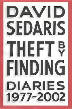 Theft by Finding: Diaries (1977–2002) is an edited compilation of diary entries by David Sedaris published on May 30, 2017.[1][2] Sedaris shares selected entries spanning from his days as a 20-year-old hitchhiking through Oregon to living in London just shy of his 46th birthday.[3] It was released in advance of David Sedaris Diaries: A Visual Compendium, which was published the same year and edited by Jeffrey Jenkins.[4]