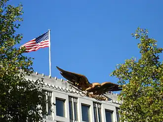 Roszak sculpted the 35-foot (11 m) gilded aluminum eagle on the pediment of the former US Embassy in Grosvenor Square, London.[5]