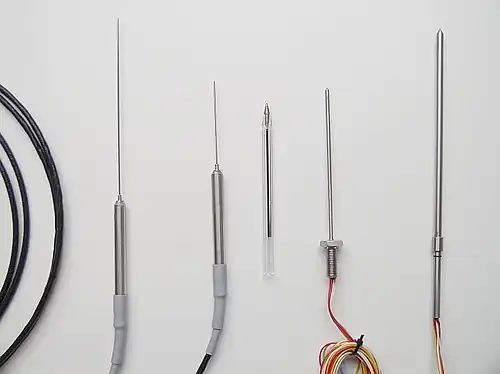 Most of the THW sensors used in academia consist of two identical very thin wires with only difference in the length.[3] Sensors using a single wire,[7][8] are used both in academia and industry with the advantage over the two-wire sensors the ease of handling of the sensor and change of the wire.