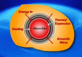 - This mechanical expansion produces an acoustic wave that propagates outward in all directions from the site of energy absorption at the velocity of sound in biologic tissue, approximately 1.5 mm per microsecond.