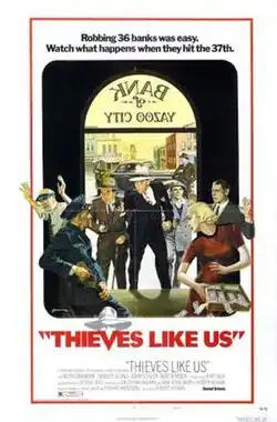 Thieves Like Us is a 1974 American crime film, set in the United States of the 1930s. It was directed by Robert Altman and starred Keith Carradine and Shelley Duvall. The film was based on the novel of the same name by Edward Anderson, which also supplied source material for the 1948 film They Live by Night, directed by Nicholas Ray. The Altman film sticks much closer to the book. The supporting cast includes Louise Fletcher and Tom Skerritt.