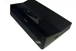 Additionally, the ThinkPad Tablet is able to run software such as IBM's Lotus Notes Traveler.[4] The stylus could be used to write notes on the Tablet, which also included software to convert this handwritten content to text.[4] Another feature on the Tablet was a drag-and-drop utility designed to take advantage of the Tablet's touch capabilities.[4] This feature could be used to transfer data between USB devices, internal storage, or an SD card.[4]
