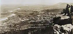 In 1887 the Railways Department opened a railway station in the town,[3] and in 1892 officially adopted the name Thirroul.[2] The source for this suggestion was probably Archibald Campbell, then owner and editor of the Illawarra Mercury, who was interested in Indigenous languages. His original manuscript transcription of the Aboriginal word for the cabbage tree palm which flourished in the area was Dthirrawell. In 1892, Port Kembla Aboriginal elder William Sadler said that the word Thirroul was meaningless. The proper term must be, he claimed, throon, referring to the bush leeches collected near the town. A local historian, Joseph Davis, cleared up the confusion in 1994, revealing that Campbell's original manuscript transliteration of the term, Dthirrawell was almost illegible, and a clerk had misread and mistranscribed it as Thirroul.[3]