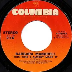 - ^ Mandrell, Barbara (September 1974). "This Time I Almost Made It (LP Album Information)". Columbia Records. KC-32959.