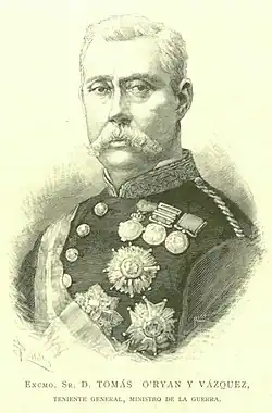 Thomás O'Ryan y Vázquez (1821, in Madrid – 1902) was a Spanish military Lieutenant General, Minister of War, and Professor at the Academy of Military Engineering in Guadalajara, Spain. He was of Irish descent.