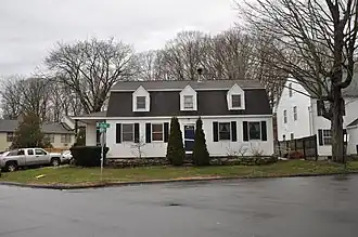 The Thomas Harrison House is located west of Branford Center, in the Canoe Brook residential area. It is located at the northwestern corner of Bradley and North Harbor Streets, and is angled to face the junction. It is a 1+1⁄2-story wood-frame structure, with a gambrel roof and clapboarded exterior. Its main facade is five bays wide, and the front roof face is pierced by three gabled dormers. The house originally had a large central chimney, which (at least above the roof) has been replaced by a modern metal stovepipe. The main facade is symmetrical, with sash windows arranged around the main entrance, which is simply framed. An ell extends to the west of the main block.[2]
