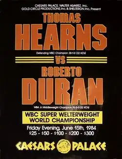- ^ "Thomas Hearns vs. Roberto Duran". boxrec.com. BoxRec. Retrieved 5 September 2024.